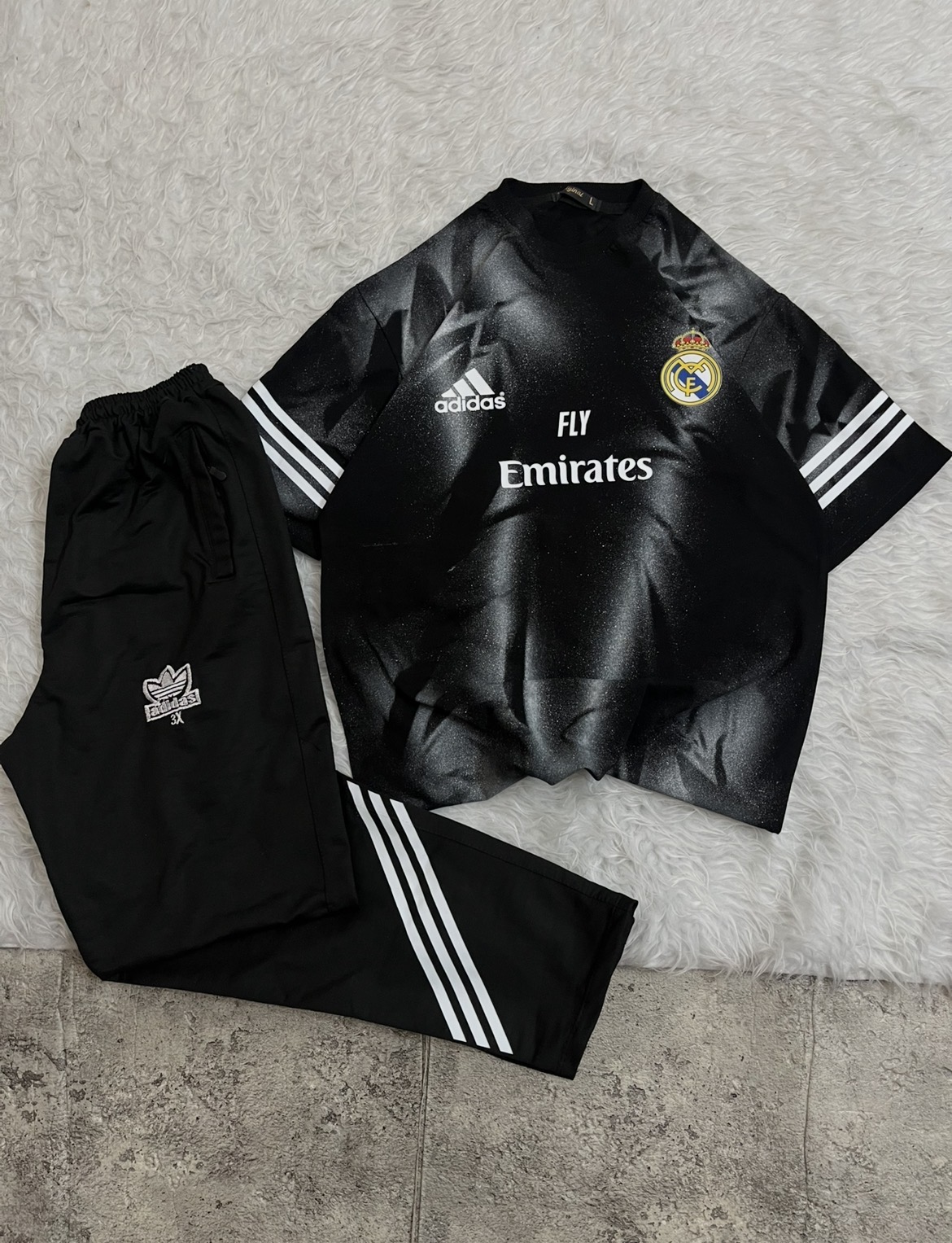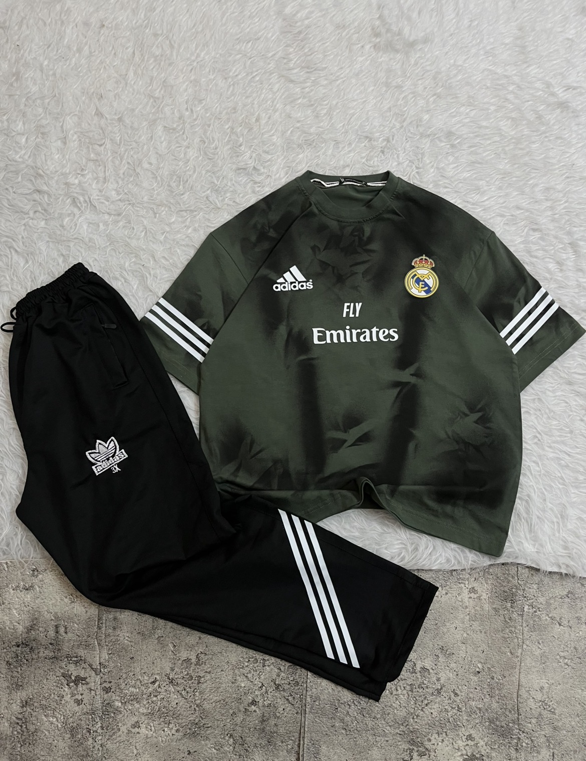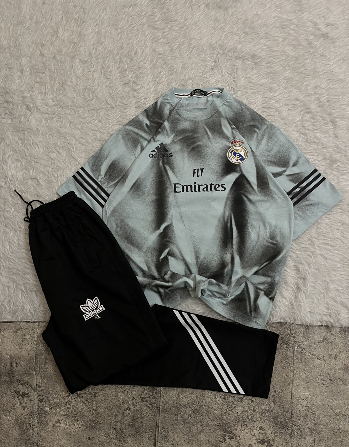 ست تیشرت و اسلش هواداری الهامگرفته از باشگاه افسانهای رئال مادرید (Real Madrid) با طراحی مینیمال و شیک، دقیقاً همون چیزیه که استایل روزمرهتو چند سطح بالاتر میبره. ترکیب لوگوی رسمی، طراحی حرفهای برند آدیداس (Adidas) و اسپانسر معروف امارات (Emirates) حس یک لباس اورجینال فوتبالی رو کامل منتقل میکنه.