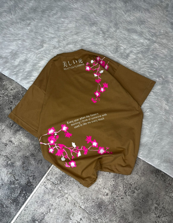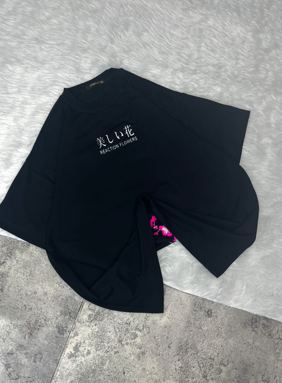 تیشرت نخ پنبه طرح گل ژاپنی صورتی