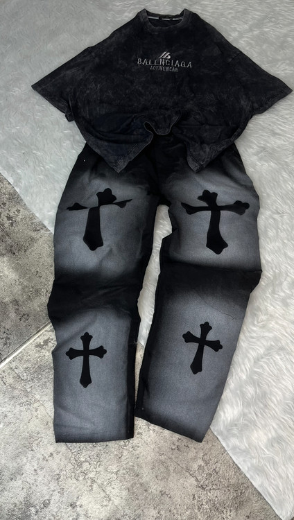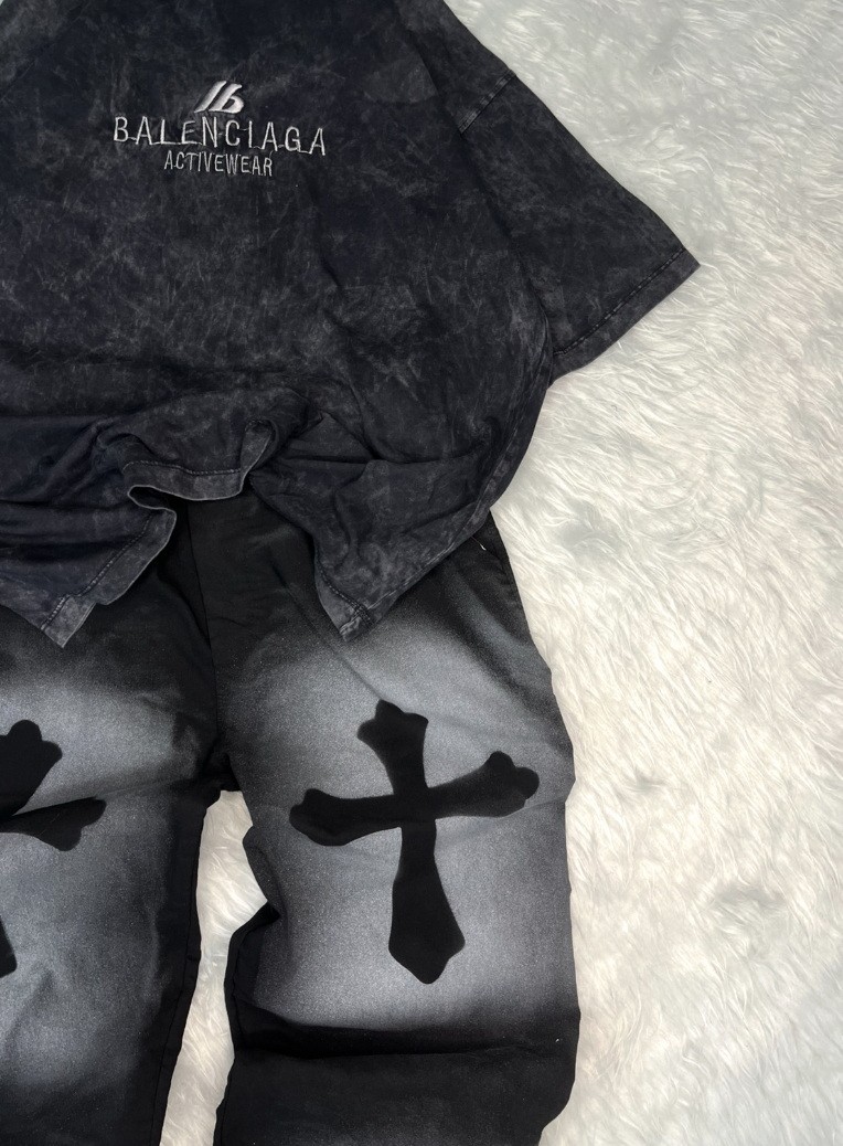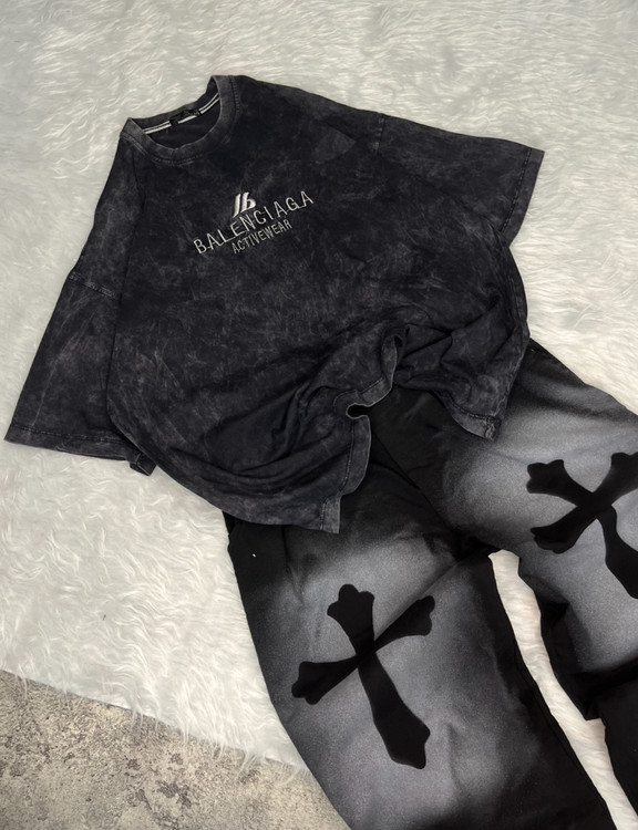 ست تیشرت و شلوار اسلش نخ پنبه کاستوم
